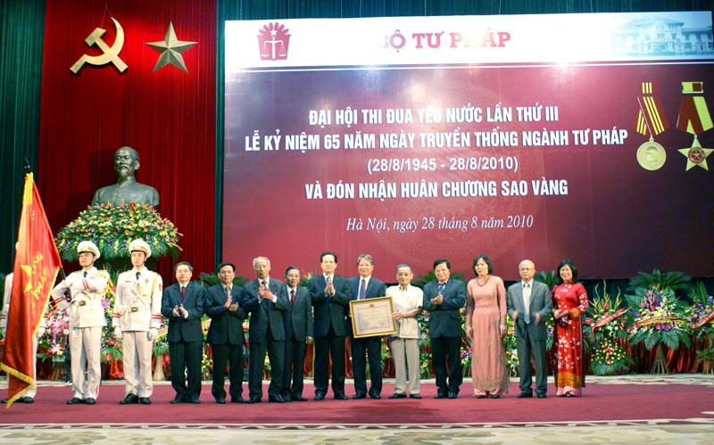 On behalf of the Party and State, Prime Minister Nguyen Tan Dung handed over the Gold Star Order to Justice Sector. This was an honourable award for outstanding contributions of Justice Sector’s collectives and individuals to the revolutionary cause of the Party and the nation./. -ITD