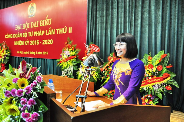Phát biểu tại Hội nghị, đồng chí Nguyễn Giang Tuệ Minh, Phó Chủ tịch thường trực Công đoàn viên chức Việt Nam đã biểu dương, chúc mừng những thành tích của Công đoàn Bộ Tư pháp trong nhiệm kỳ vừa qua. Đồng chí đề nghị công đoàn Bộ cần tiếp tục nhận thức sâu sắc hơn nữa nhiệm vụ chính trị của ngành và vai trò của công đoàn trong giai đoạn hiện nay; phát huy hơn nữa vai trò của Công đoàn, đặc biệt là các công đoàn co sở, đồng hành cùng chuyên môn và cùng chung mục tiêu thực hiện nhiệm vụ chính trị, thực sự đại diện, bảo vệ quyền, lợi ích hợp pháp, chính đáng của cán bộ đoàn viên. Đồng chí nhấn mạnh: vấn đề đặt ra cho tổ chức công đoàn là cùng với chuyên môn phát huy hơn nữa tiềm năng trí tuệ của đội ngũ cán bộ đoàn viên trong quá trình thực thi nhiệm vụ tạo điều kiện để đội ngũ này được thể hiên, cống hiến, được ghi nhận và trưởng thành, đóng góp nhiều nhất vào sự phát triển của Bộ, ngành, đất nước.