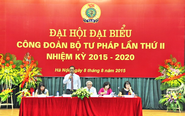 Sáng 08/8, Công đoàn Bộ Tư pháp đã tiến hành Đại hội đại biểu lần thứ II, nhiệm kỳ 2015 – 2020 nhằm tổng kết, đánh giá những kết quả đạt được của phong trao cán bộ, công chức, viên chức, lao động và hoạt động công đoàn nhiệm kỳ 2010-2015, đề ra phương hướng, mục tiêu, nhiệm vụ nhiệm kỳ 2015-2020, từ đó tiếp tục nâng cao chất lượng, hiệu quả hoạt động và xây dựng tổ chức công đoàn ngày càng lớn mạnh, góp phần xứng đáng vào sự nghiệp phát triển ngành Tư pháp; đẩy mạnh công nghiệp hóa, hiện đại hóa đất nước và hội nhập quốc tế.