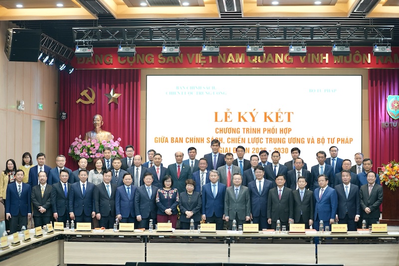 Chiều 15/1, tại trụ sở Bộ Tư pháp đã diễn ra Lễ ký kết Chương trình phối hợp giữa Ban Chính sách, chiến lược Trung ương và Bộ Tư pháp giai đoạn 2026 - 2030. Tham dự buổi Lễ có Ủy viên Trung ương Đảng, Trưởng Ban Chính sách, chiến lược Trung ương Nguyễn Thanh Nghị và Ủy viên Trung ương Đảng, Bộ trưởng Bộ Tư pháp Nguyễn Hải Ninh cùng đại diện lãnh đạo hai bên.