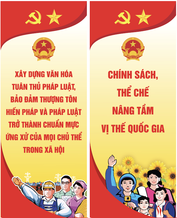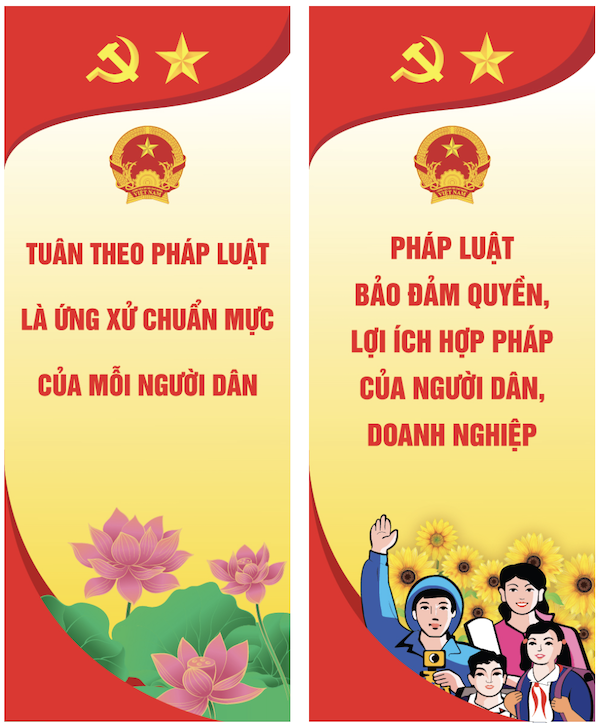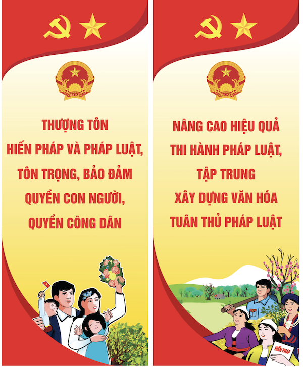 Các mẫu pano, banner, standee truyền thông hưởng ứng Ngày Pháp luật Việt Nam do Bộ Tư pháp thiết kế