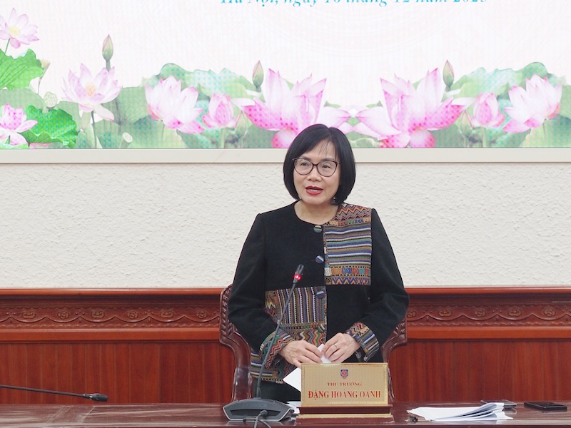 Phát biểu kết luận Hội nghị, Thứ trưởng Đặng Hoàng Oanh ghi nhận và biểu dương những nỗ lực, cố gắng và kết quả công tác của năm 2025 và cả nhiệm 2021 - 2025 của các Trường Cao đẳng Luật đã đạt được. Đồng thời yêu cầu đẩy nhanh tiến độ hoàn thiện Đề án sắp xếp, sáp nhập các Trường Cao đẳng Luật, coi đây là nhiệm vụ cấp bách, không được chậm trễ.