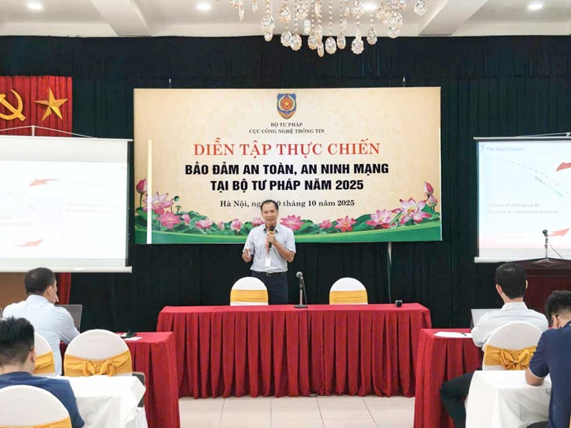 Ngày 10/10, Cục Công nghệ thông tin tổ chức Diễn tập thực chiến đảm bảo an toàn an ninh mạng tại Bộ Tư pháp năm 2025, nhằm nâng cao năng lực của thành viên Đội ứng cứu sự cố an toàn, an ninh mạng của Bộ Tư pháp, đơn vị chuyên trách về an toàn thông tin; đồng thời tăng cường bảo vệ cho hệ thống thông tin và giúp tuyên truyền cho các đơn vị thuộc Bộ về công tác đảm bảo an toàn, an ninh mạng tại Bộ Tư pháp.