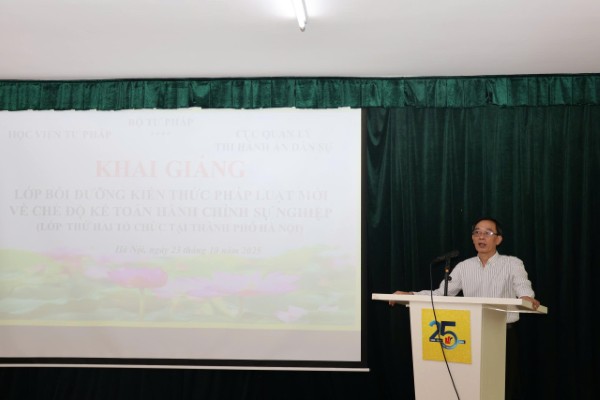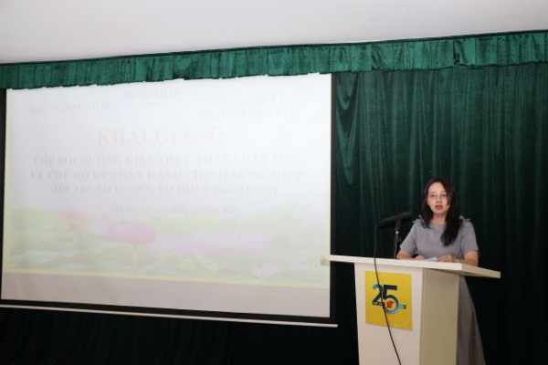 Thực hiện Kế hoạch đào tạo, bồi dưỡng trong nước cho công chức, viên chức Bộ Tư pháp năm 2025, sáng 23/10/2025, Học viện Tư pháp tổ chức khai giảng Lớp bồi dưỡng kiến thức pháp luật mới về chế độ kế toán hành chính sự nghiệp - Lớp thứ hai tổ chức tại thành phố Hà Nội.