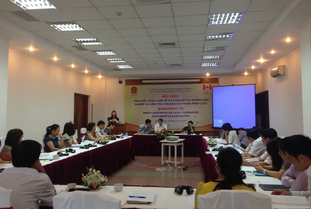 Nhằm giúp các cơ quan, người làm công tác kiểm tra văn bản nâng cao nghiệp vụ, kiến thức và hiệu quả công tác kiểm tra, Cục Kiểm tra văn bản, Bộ Tư pháp biên soạn cuốn “Sổ tay hướng dẫn nghiệp vụ kiểm tra văn bản quy phạm pháp luật”. Để hoàn thiện dự thảo Sổ tay, ngày 10/6/2015 Cục Kiểm tra văn bản đã tổ chức Hội thảo trao đổi, thảo luận về dự thảo Sổ tay hướng dẫn nghiệp vụ kiểm tra văn bản quy phạm pháp luật. Hội thảo diễn ra dưới sự chủ trì của bà Mạc Thị Hoa - Phó Cục trưởng phục trách Cục Kiểm tra văn bản, Bộ Tư pháp và ông Isabeau Vilandre - Giám đốc Văn phòng dự án Phát triển lập pháp quốc gia tại Việt Nam (National Legislative Development Project), cùng sự tham gia, góp ý của các chuyên gia có nhiều kinh nghiệm trong lĩnh vực kiểm tra văn bản QPPL và đại diện một số Bộ, ngành, địa phương.