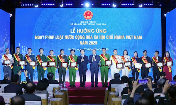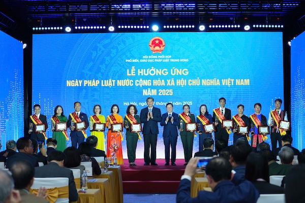 Chương trình cũng đã vinh danh “Gương sáng Pháp luật năm 2025” với 55 cá nhân tiêu biểu. Ủy viên Bộ Chính trị, Chủ tịch Quốc hội Trần Thanh Mẫn; Ủy viên BCH Trung ương Đảng, Phó Thủ tướng Chính phủ, Chủ tịch Hội đồng phối hợp phổ biến, giáo dục pháp luật Trung ương Hồ Quốc Dũng; đồng chí Nguyễn Hải Ninh, Ủy viên BCH Trung ương Đảng, Bộ trưởng Bộ Tư pháp; đồng chí Hoàng Thanh Tùng, Ủy viên BCH Trung ương Đảng, Chủ nhiệm Ủy ban Pháp luật và Tư pháp; đồng chí Lê Quang Mạnh, Ủy viên BCH Trung ương Đảng, Tổng Thư ký Quốc hội, Chủ nhiệm Văn phòng Quốc hội; đồng chí Y Vinh Tor, Ủy viên dự khuyết BCH Trung ương Đảng, Thứ trưởng Bộ Dân tộc và Tôn giáo; đồng chí Nguyễn Thanh Ngọc, Thứ trưởng Bộ Tư pháp; đồng chí Mai Lương Khôi, Thứ trưởng Bộ Tư pháp đã trao Chứng nhận và Kỷ niệm chương tặng các Gương sáng Pháp luật.