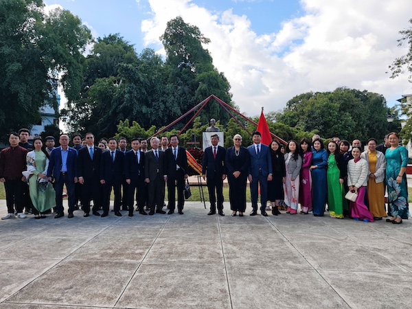 Trong buổi làm việc cùng ngày với Đại sứ quán Việt Nam tại Cuba, Đoàn đã được nghe đồng chí Lê Quang Long, Đại sứ đặc mệnh toàn quyền nước CHXHCN Việt Nam tại Cộng hòa Cuba chia sẻ thông tin về tình hình kinh tế - xã hội của đất nước Cuba và cộng đồng người Việt sinh sống, làm việc, học tập tại Cuba.