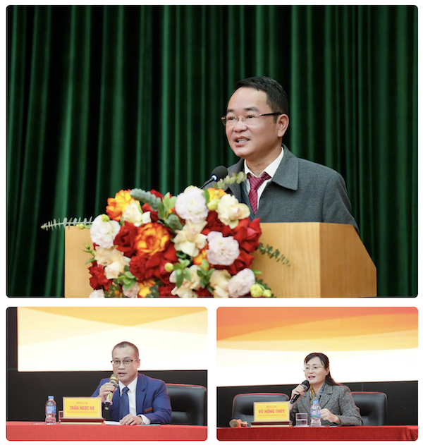 Tổng Biên tập Báo Pháp luật Việt Nam Vũ Hoài Nam (ảnh trên) và các Phó Tổng Biên tập: Trần Ngọc Hà, Vũ Hồng Thuý phát biểu tại Hội nghị.